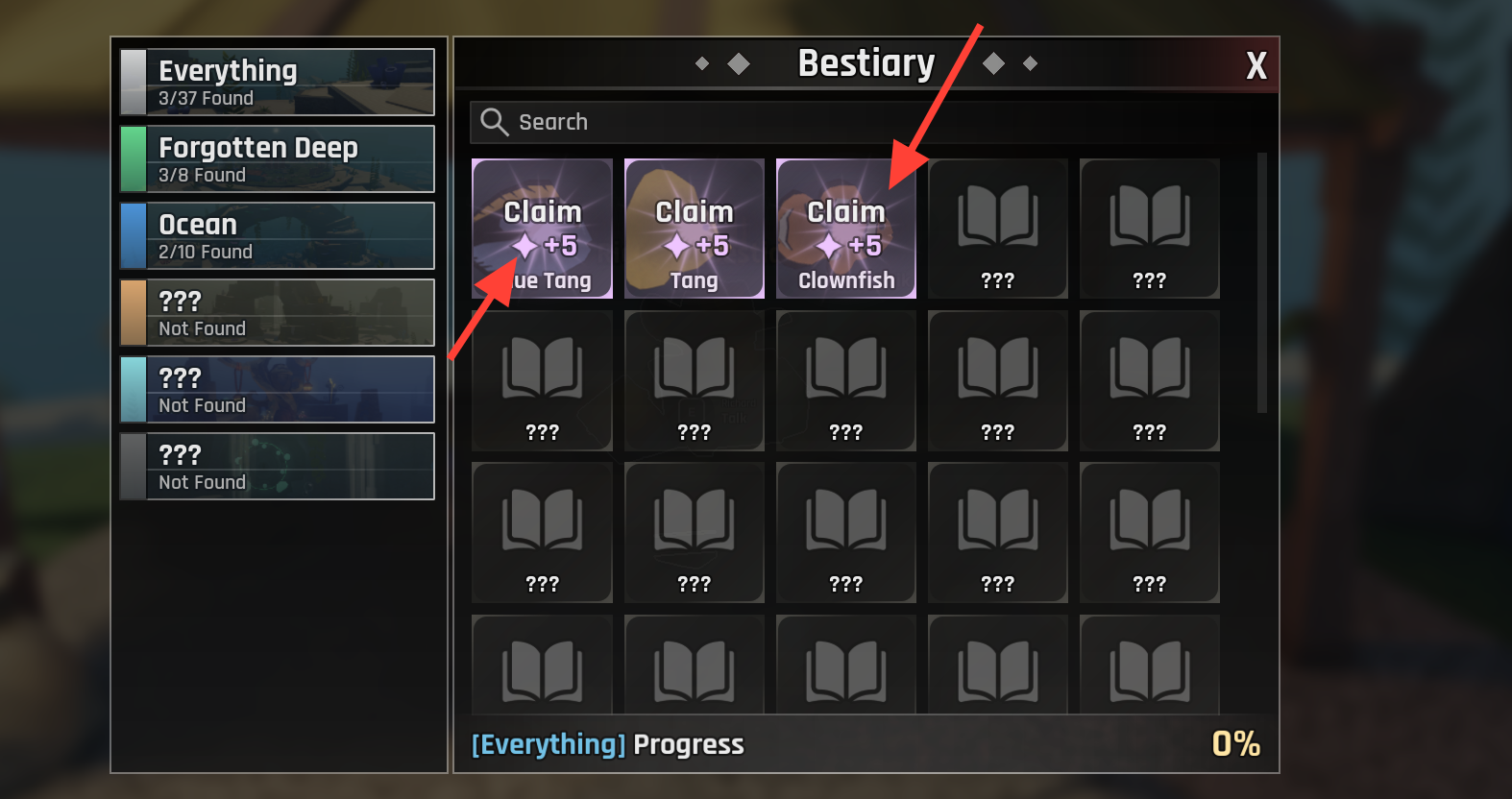 Every time you catch a new species of fish, it is documented in your Bestiary.