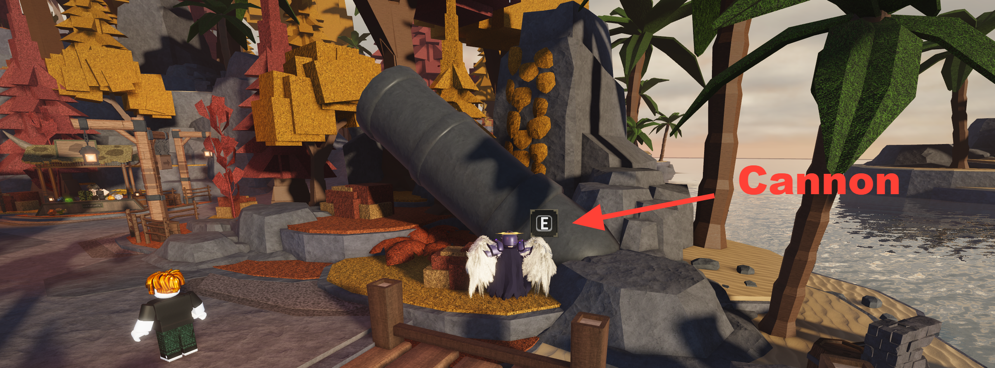 From the Forgotten Kingdom spawn, head toward the large cannon near the cliff.