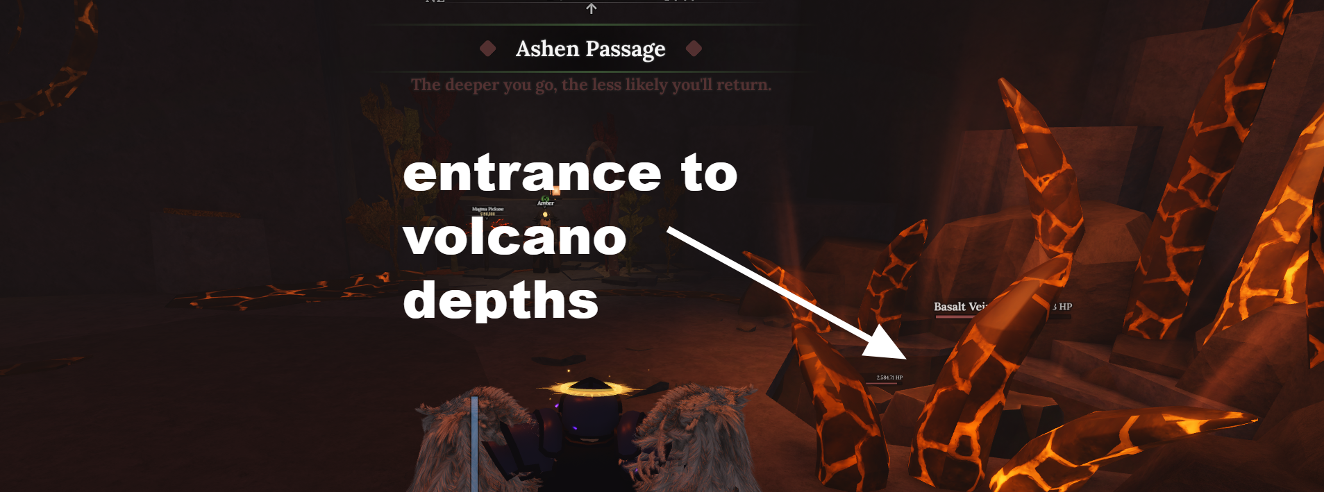 Keep following the right side until you reach the entrance to the Volcano Area.